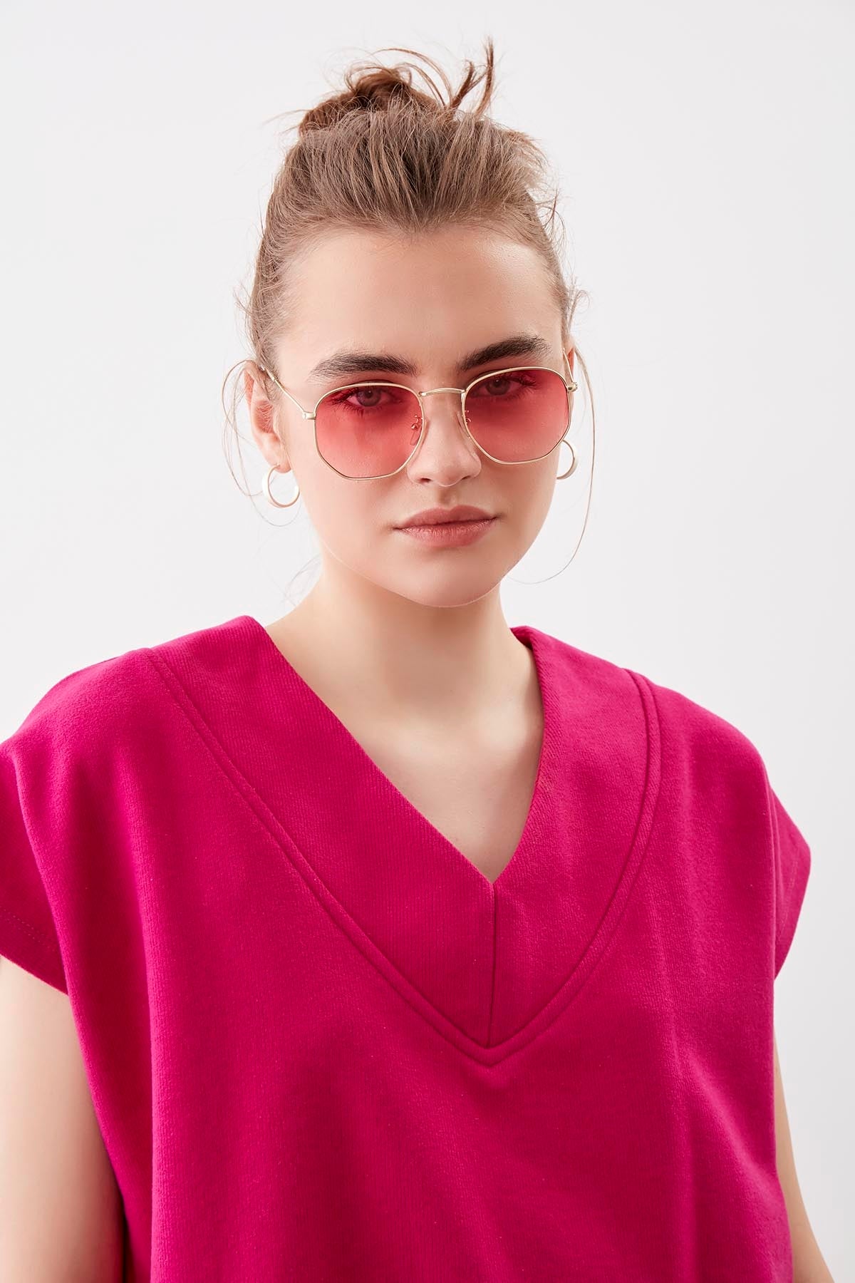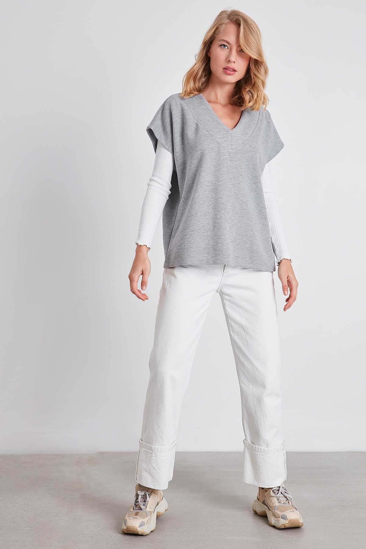 V COLLAR LOW SLEEVE KNITTED SWEAT