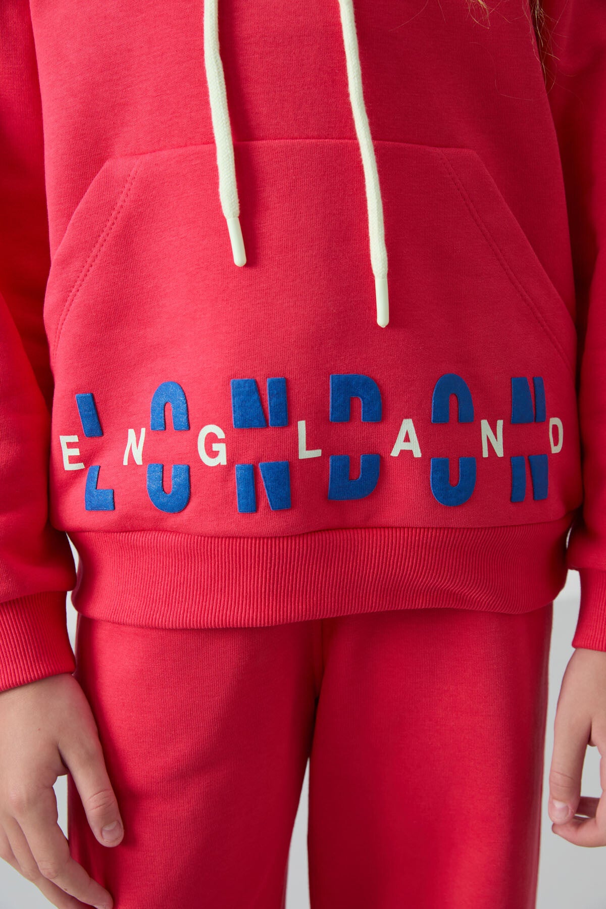Viva Red Cotton Fleece-Lined Soft Textured Oversize Print Girls' Tracksuit Set - 75147