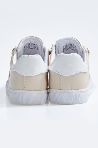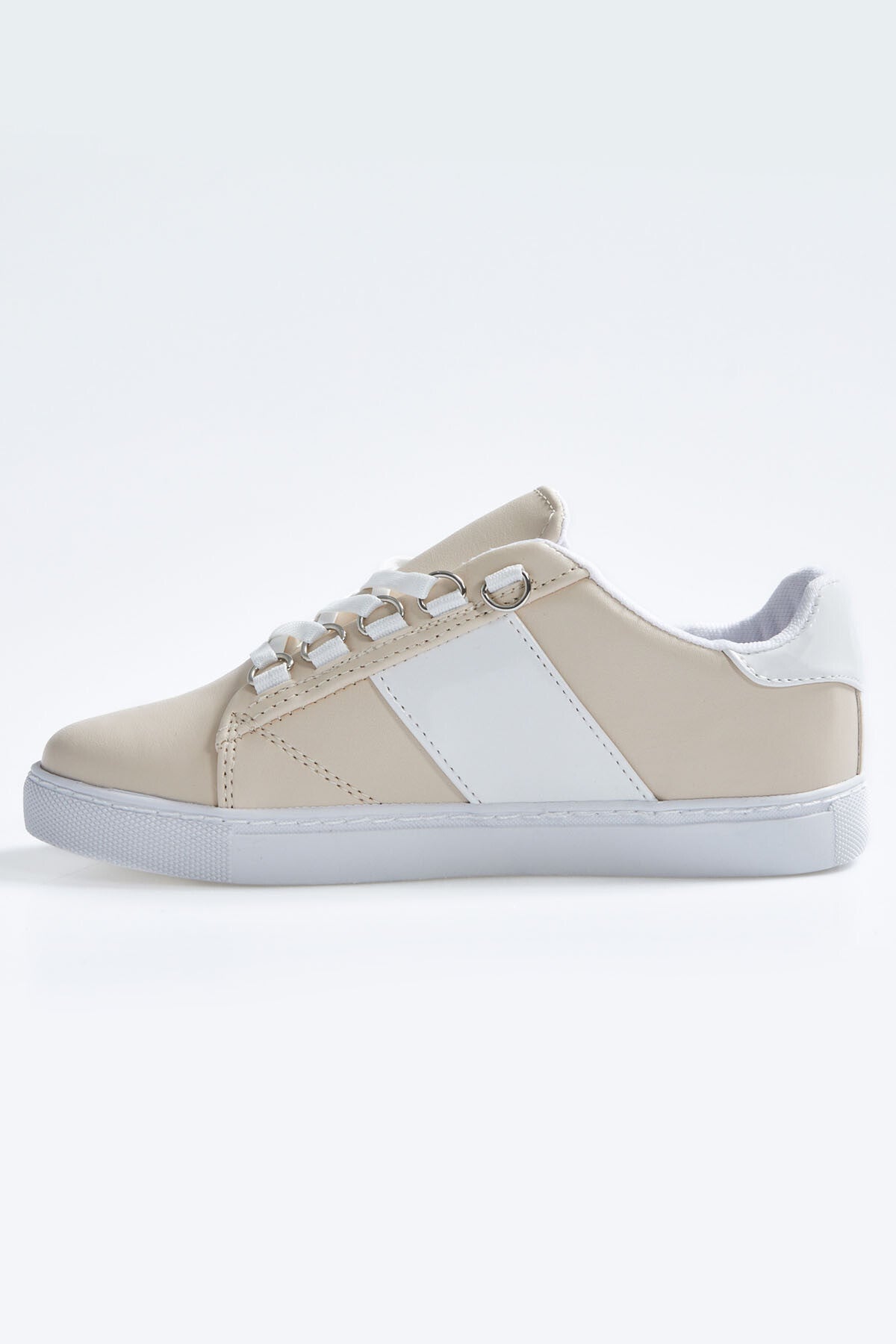 White - Beige Laced Strip Detailed PU Leather Women's Sports Shoes - 89202