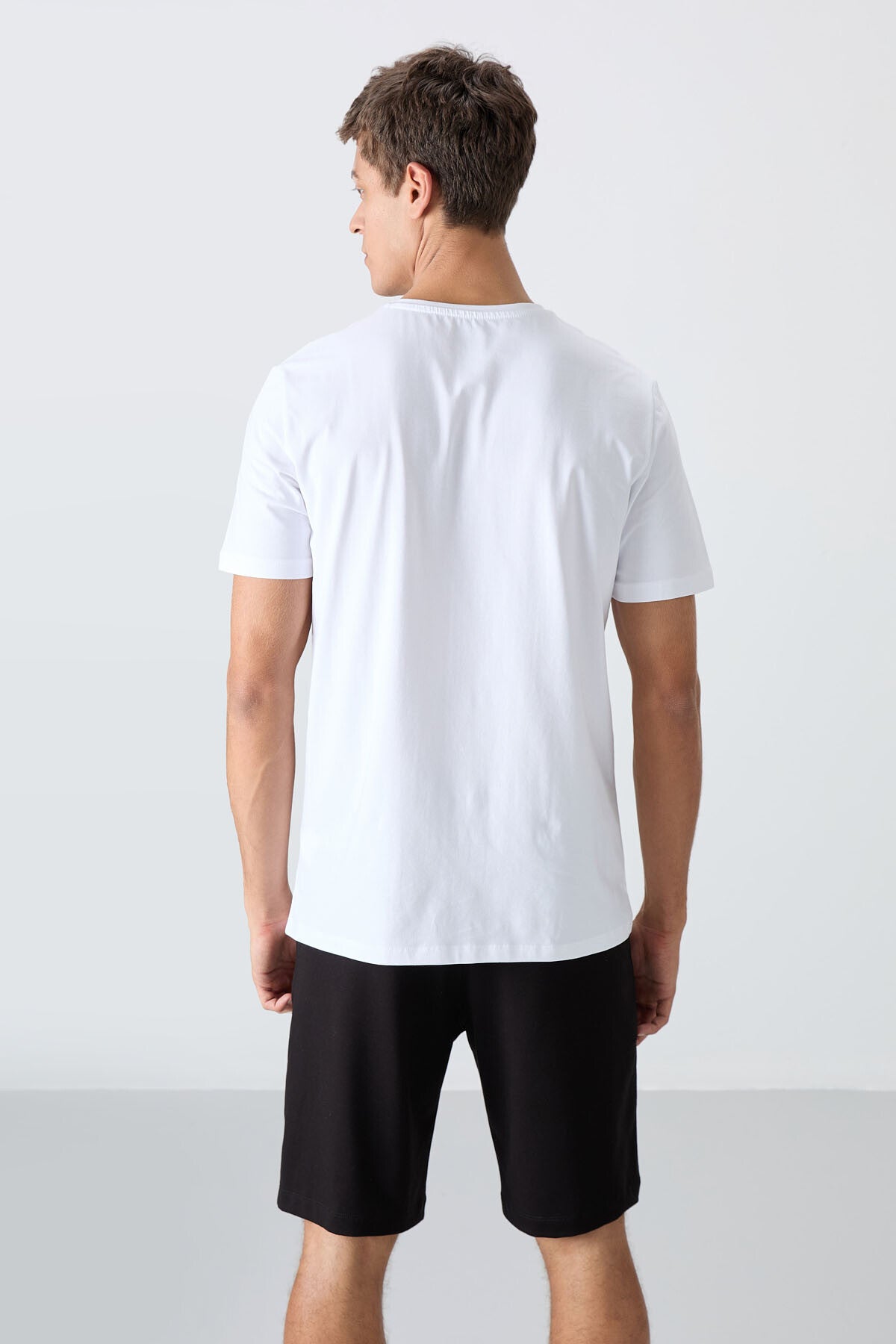 White - Black Cotton Soft Textured Standard Fit Printed Men's Shorts Set - 85243