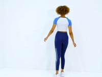White Color Block Logo Printed O Neck Slim Fit Women's Crop T-Shirt - 97270
