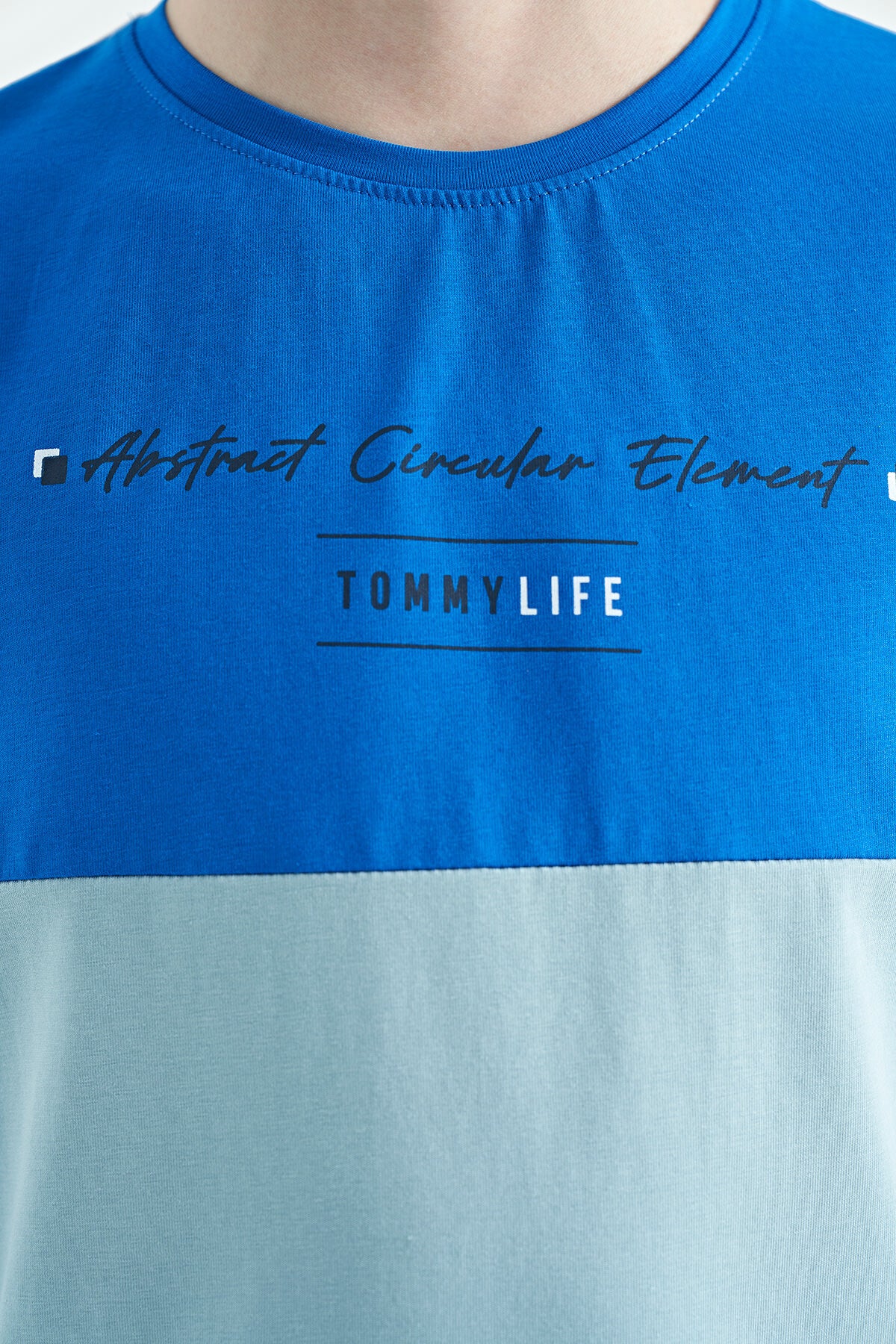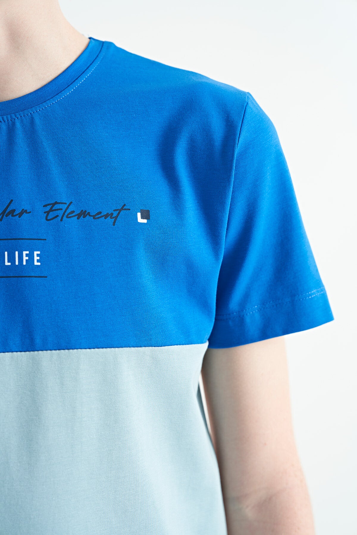 White Color Block Print O Collar Detailed Standard Cut Boys' T-Shirt - 11135