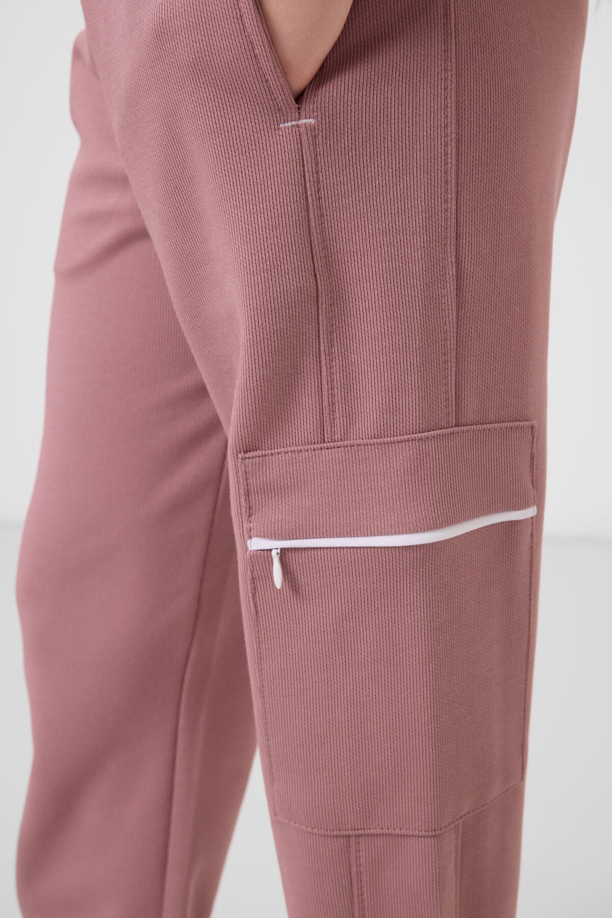 White-flower suit with o-collar printed rubber sleeve with cargo pocket Tracksuit set - 75173