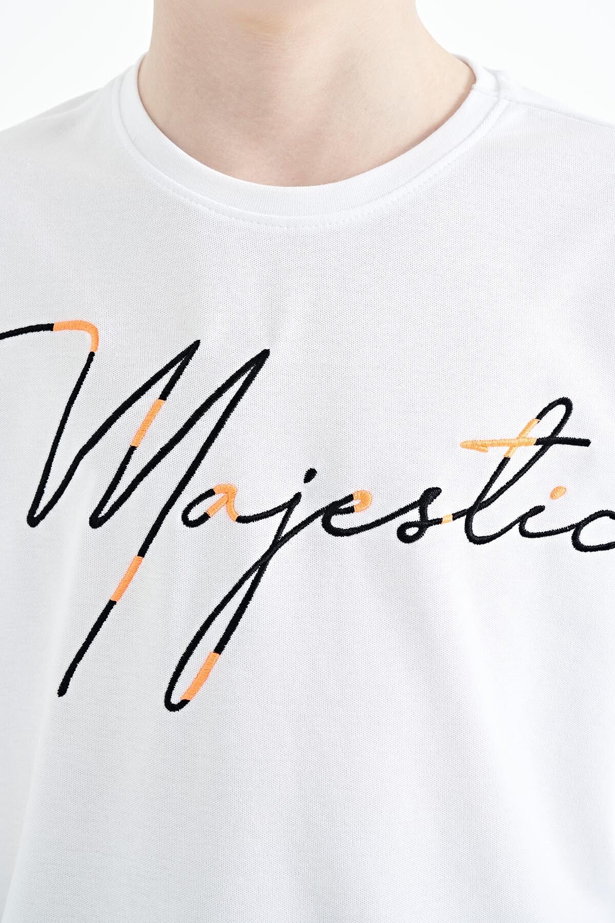 White Front Embroidered O Collar Oversize Boys T-Shirt - 11147