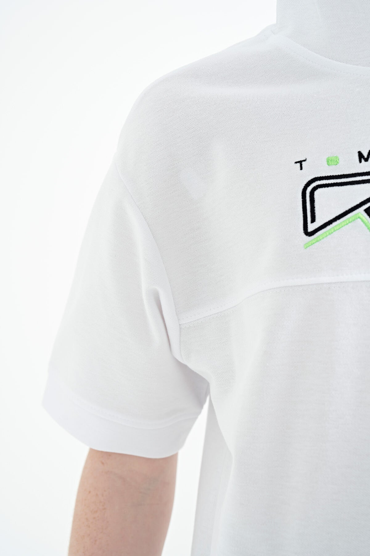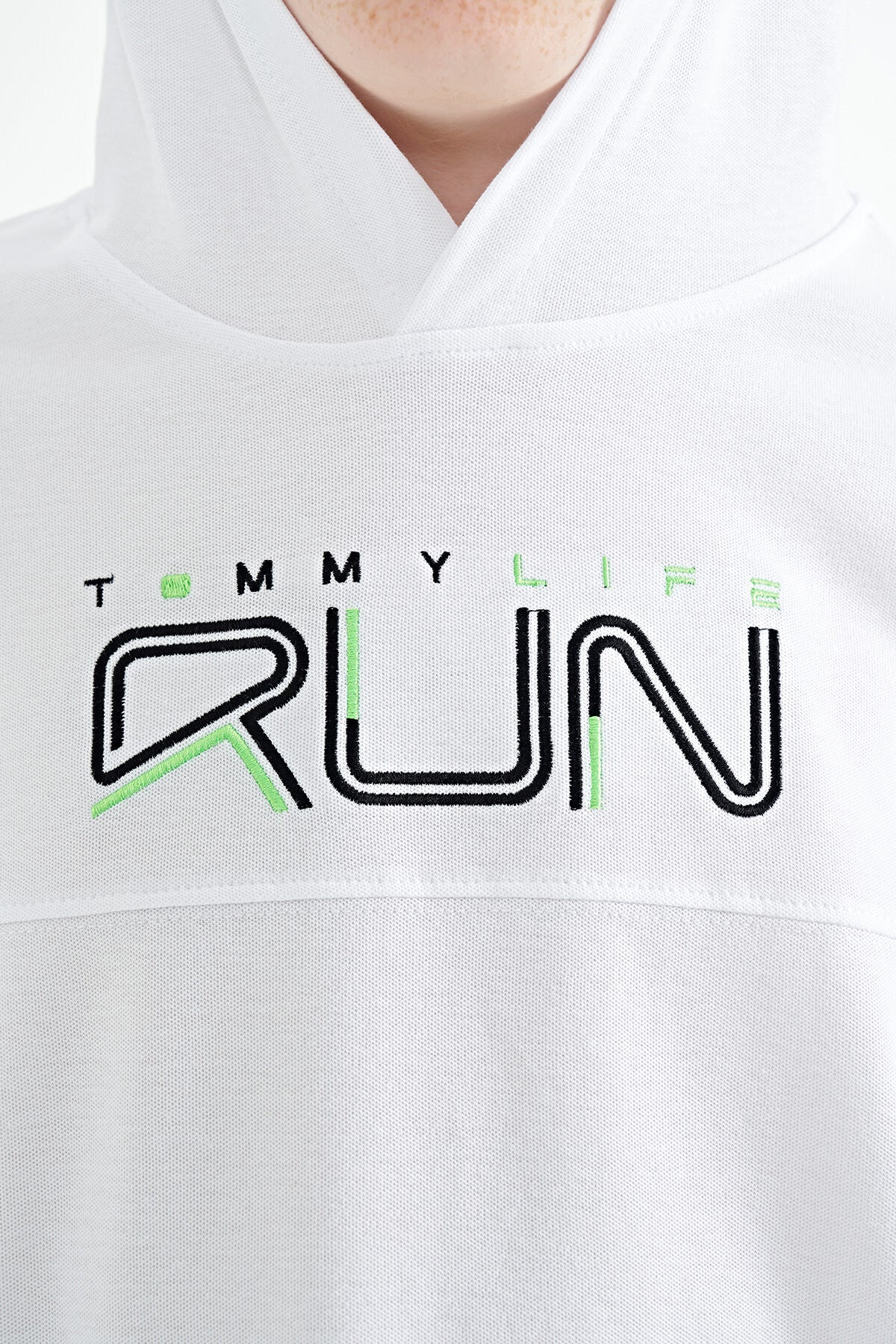 White Kangaroo Pocket Hooded Oversize Boys T-Shirt - 11160
