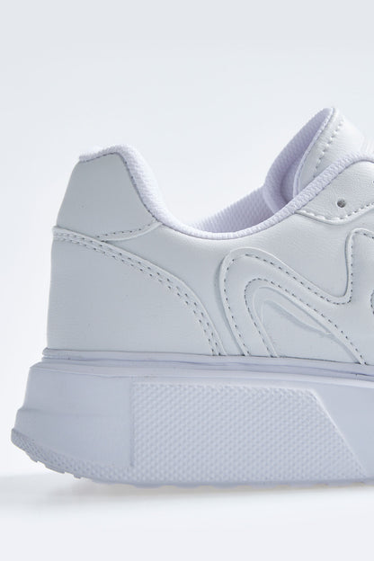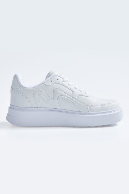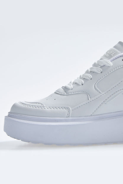 White Laced High Sole PU Leather Women's Sports Shoes - 89200