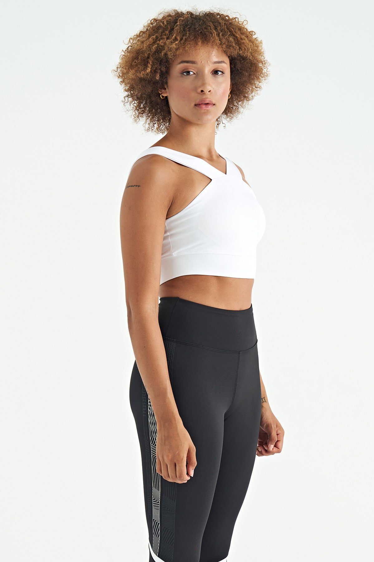 White Logo Printed Narrow Cut Scuba Fabric Women's Bustier - 97259
