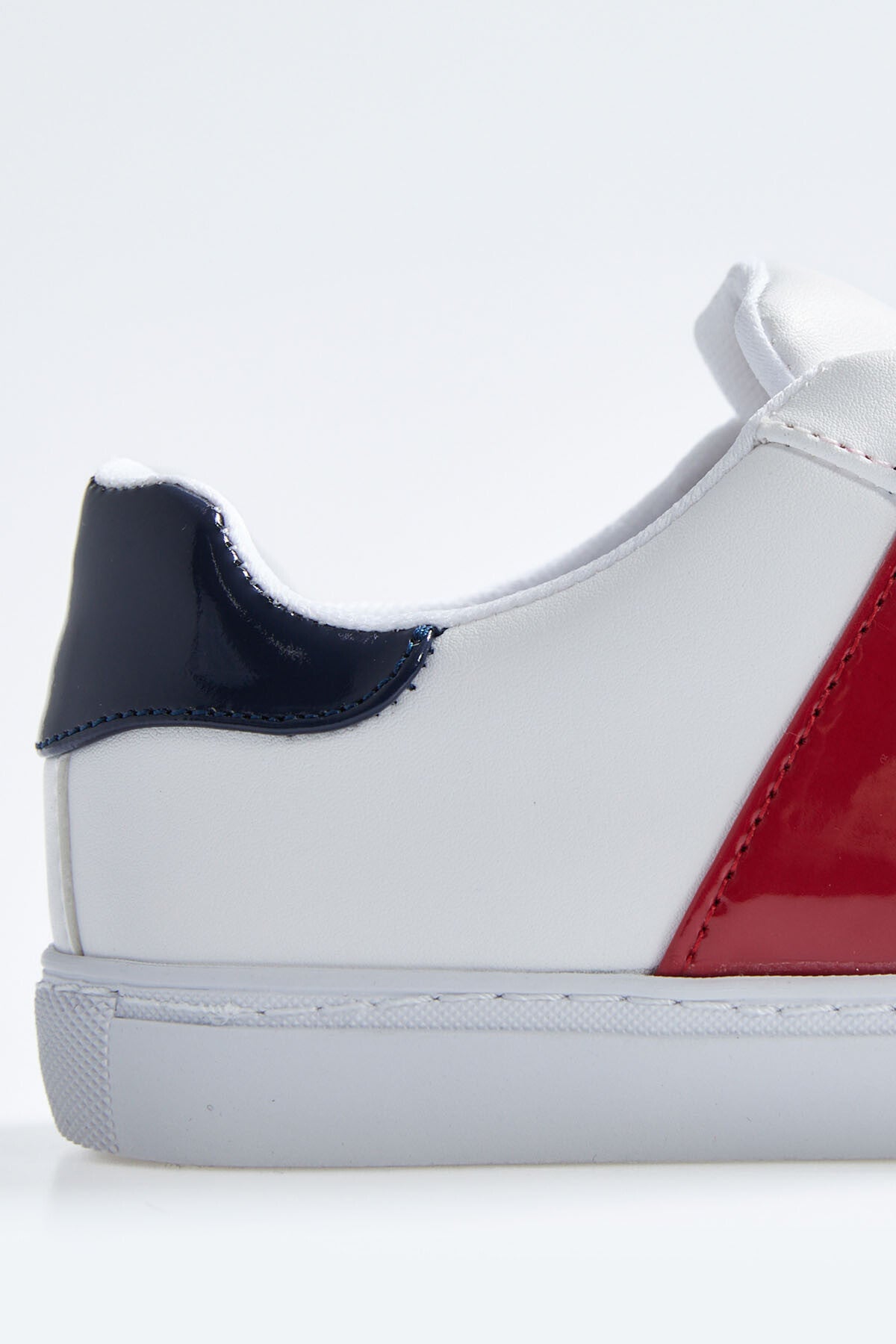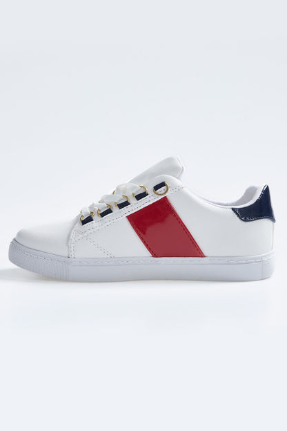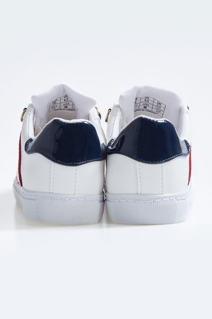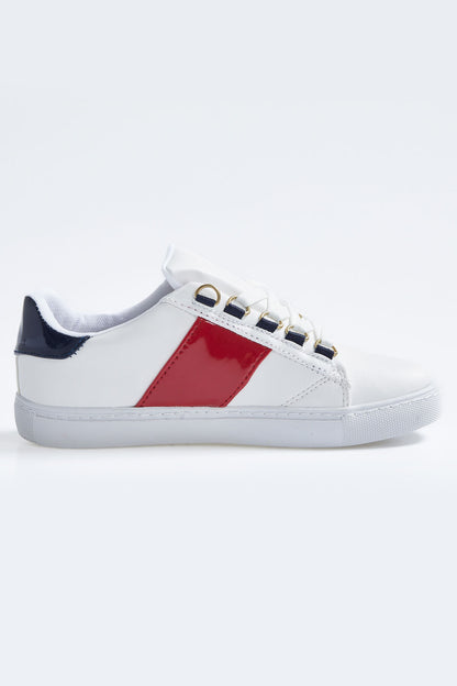 White - Navy Blue Laced Strip Detailed PU Leather Women's Sports Shoes - 89202