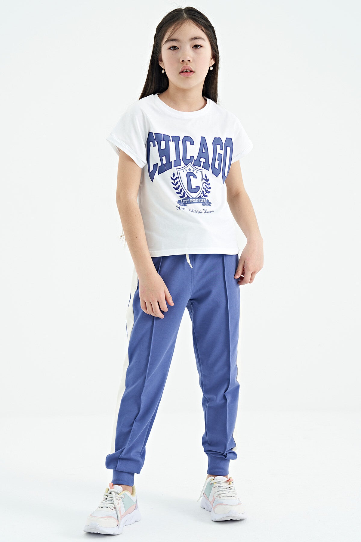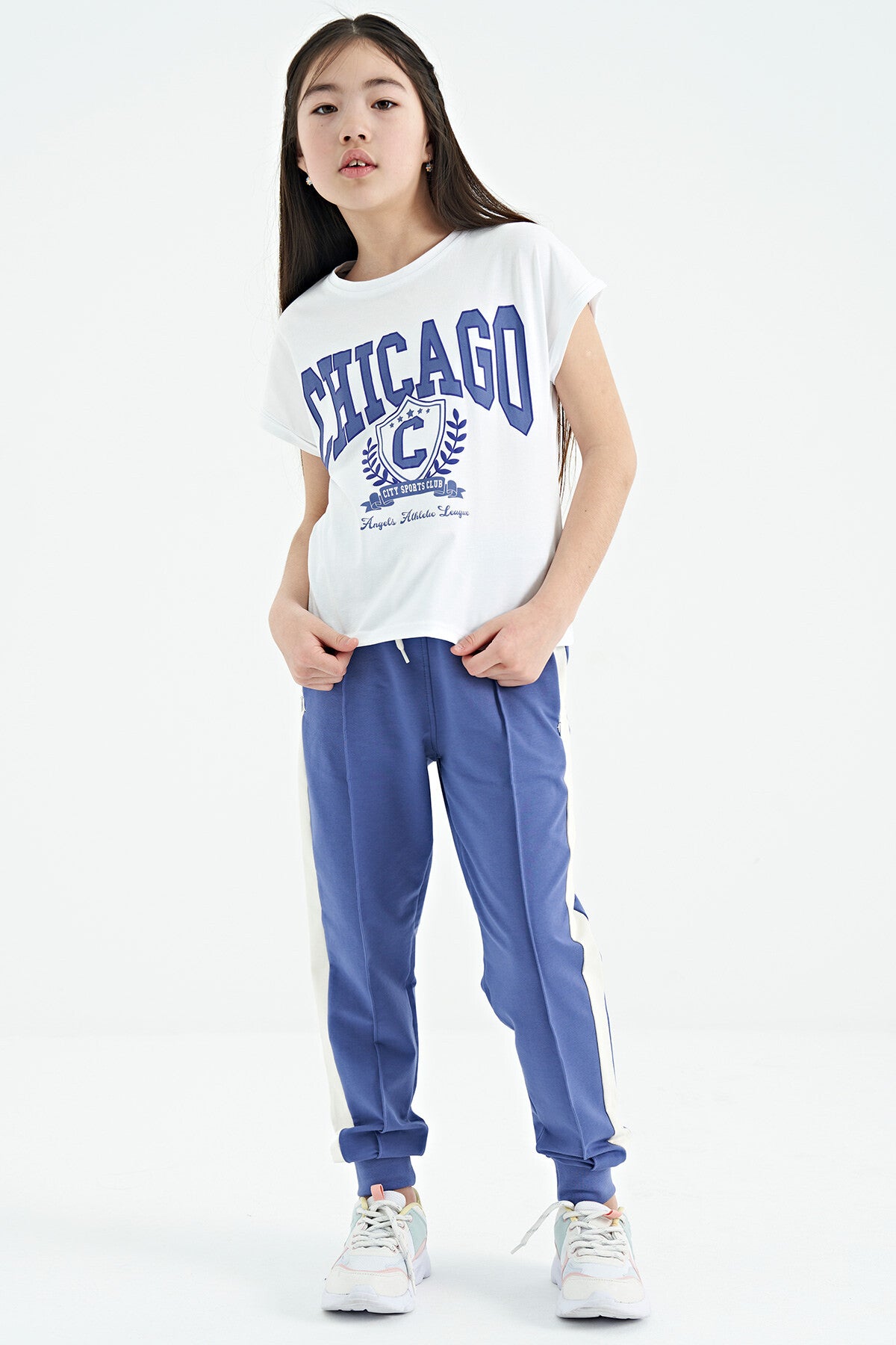 White O Collar Low Shoulder Comfort Fit Short Sleeve Girls T-Shirt - 75128