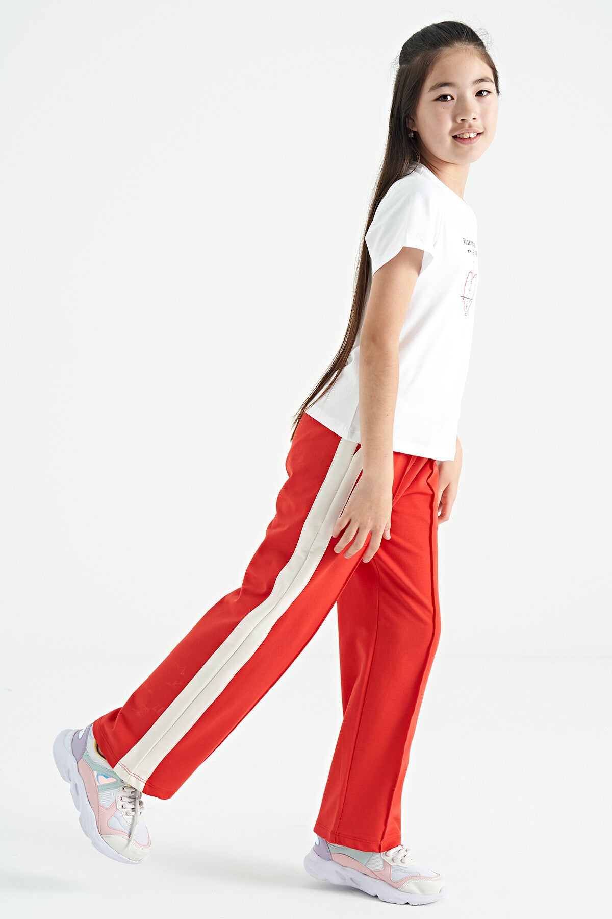 White O Collar Print Detailed Relax Fit Girl's T-Shirt - 75129