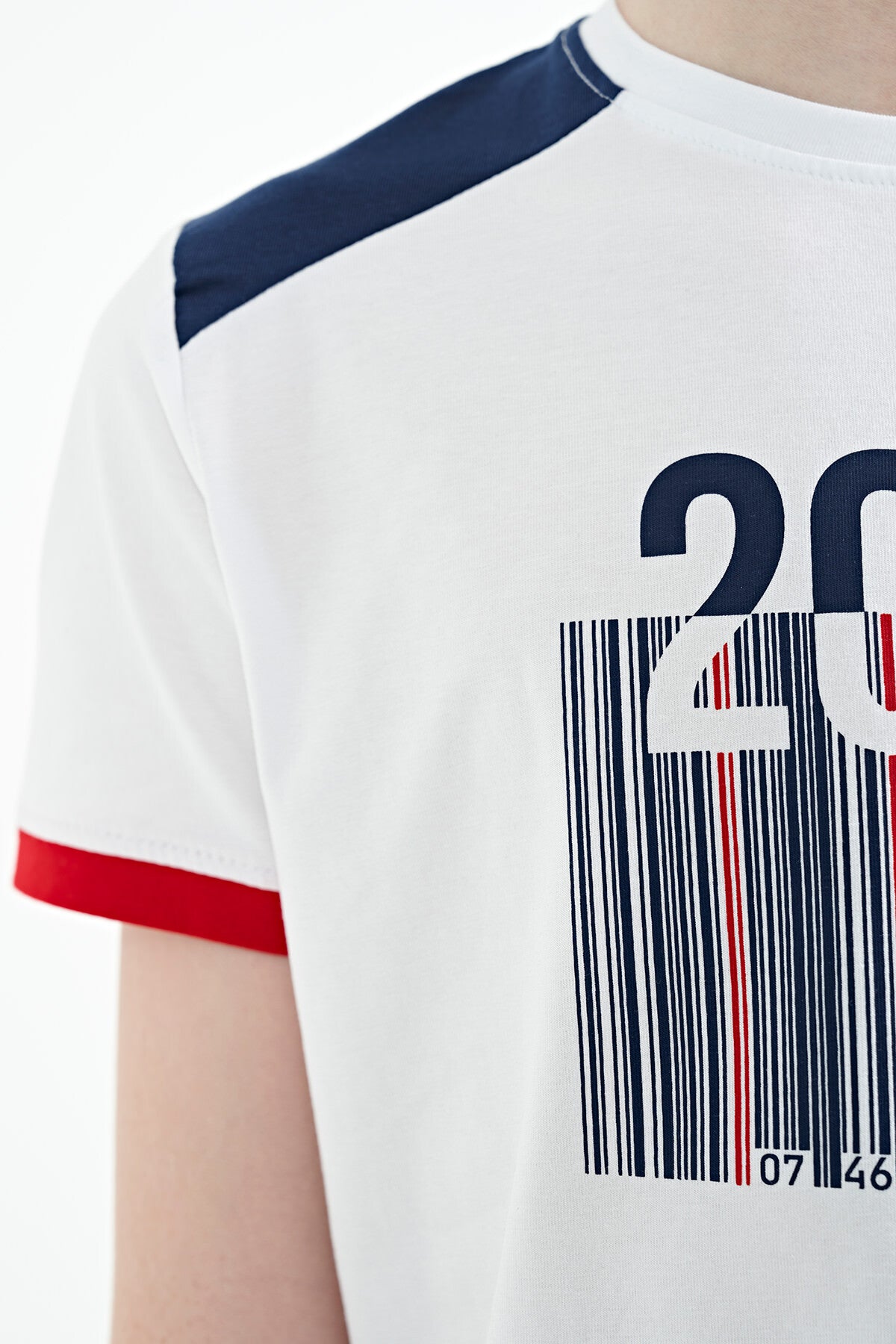 White Print Detailed O Collar Standard Fit Boys' T-Shirt - 11157
