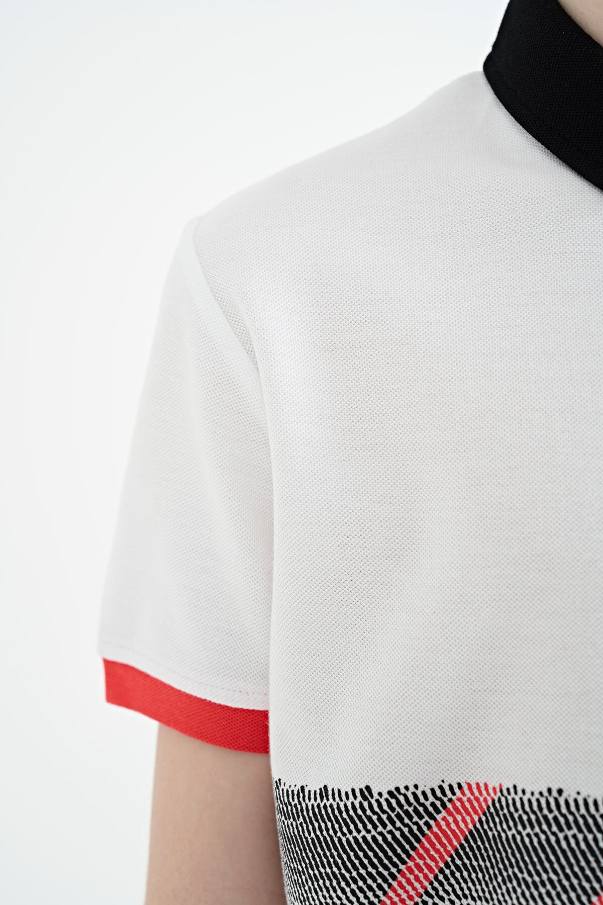 White Print Detailed Polo Collar Standard Fit Boys' T-Shirt - 11094