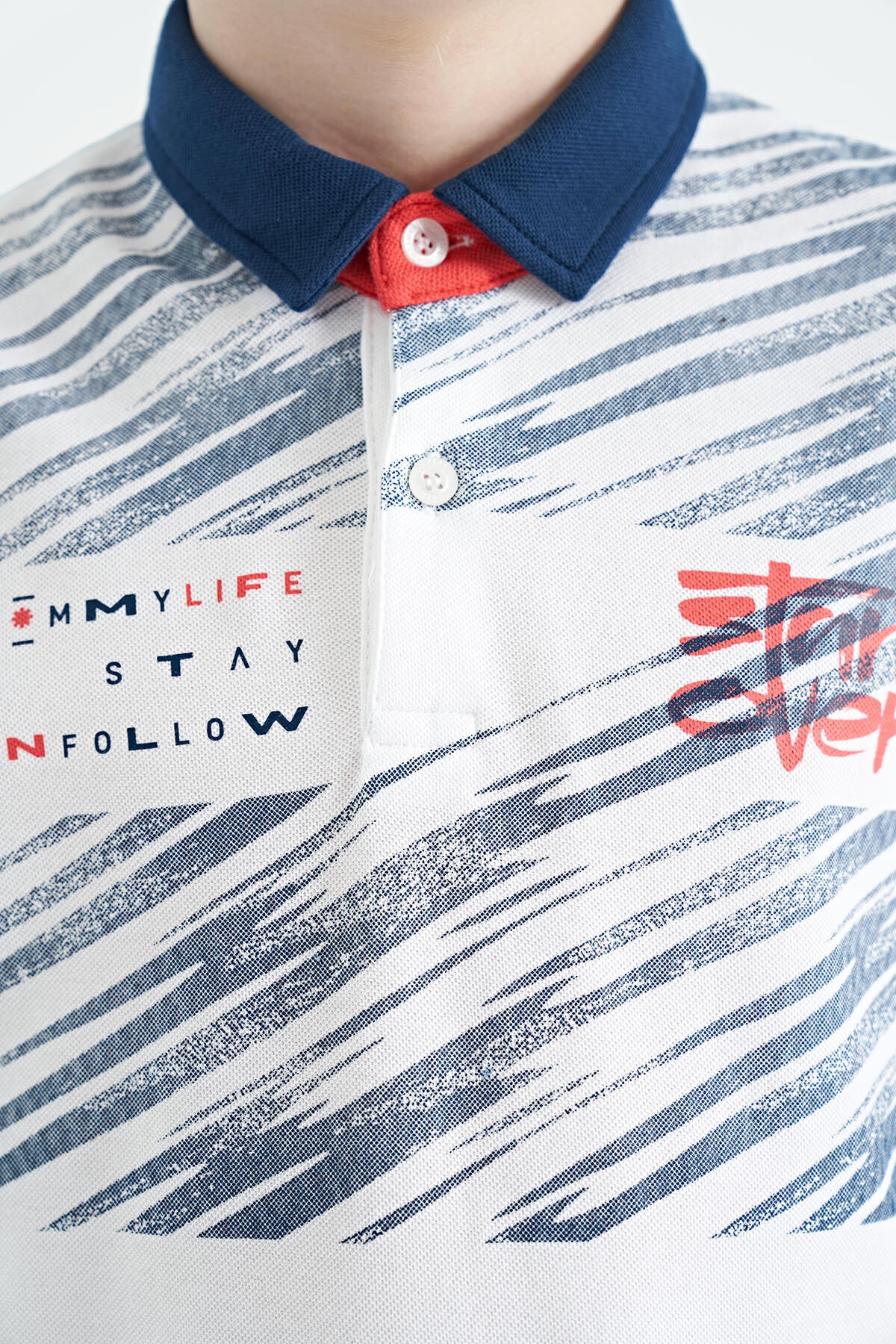 White Print Detailed Polo Collar Standard Fit Boys T-Shirt - 11161