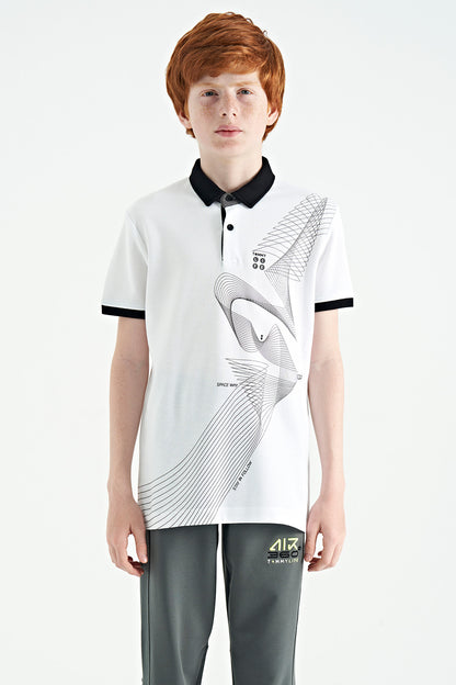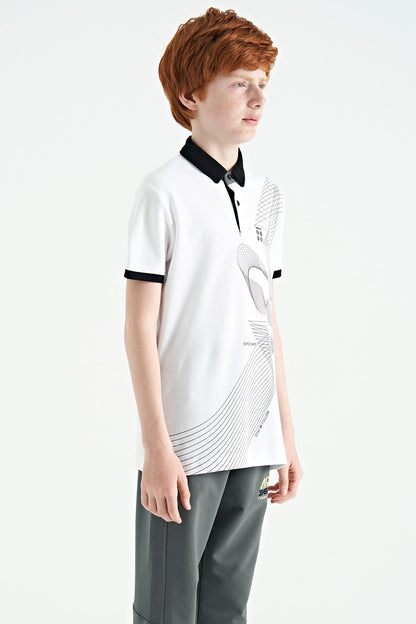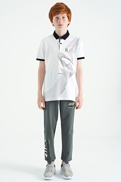 White Print Detailed Standard Mold Polo Collar Boys T-Shirt - 11164