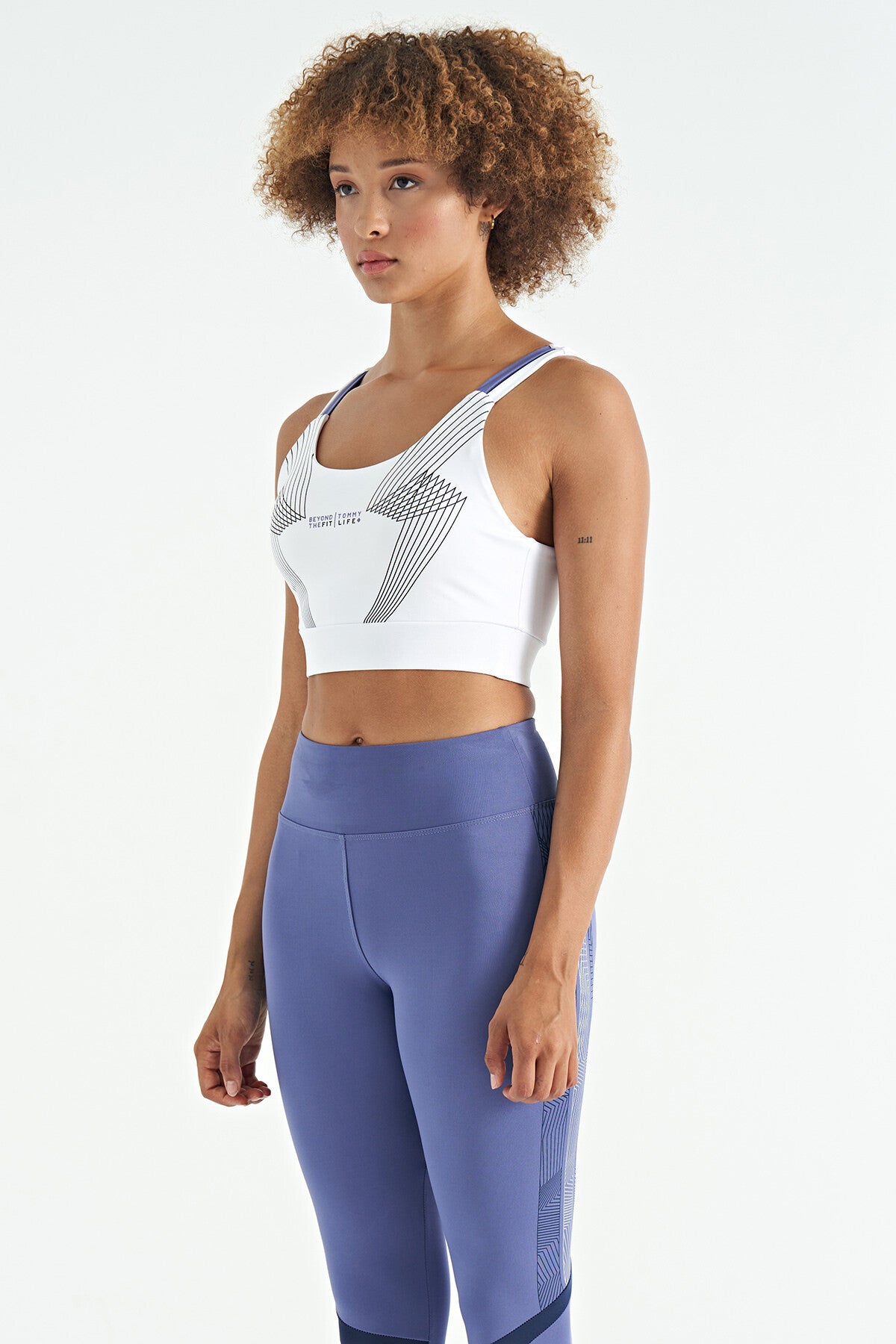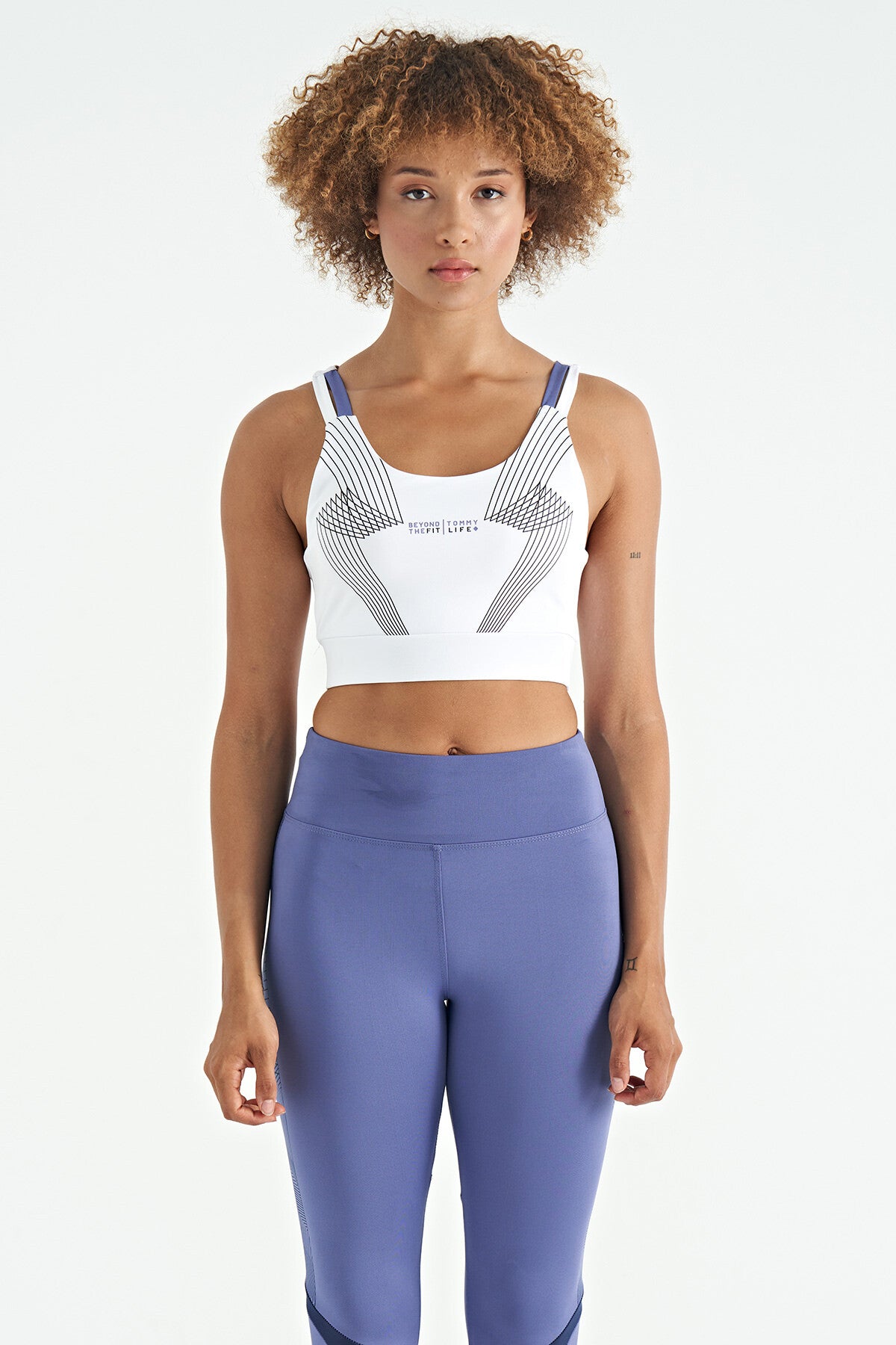 White Printed Cross Back Detailed Diver Fabric Slim Fit Women's Bustier - 97273