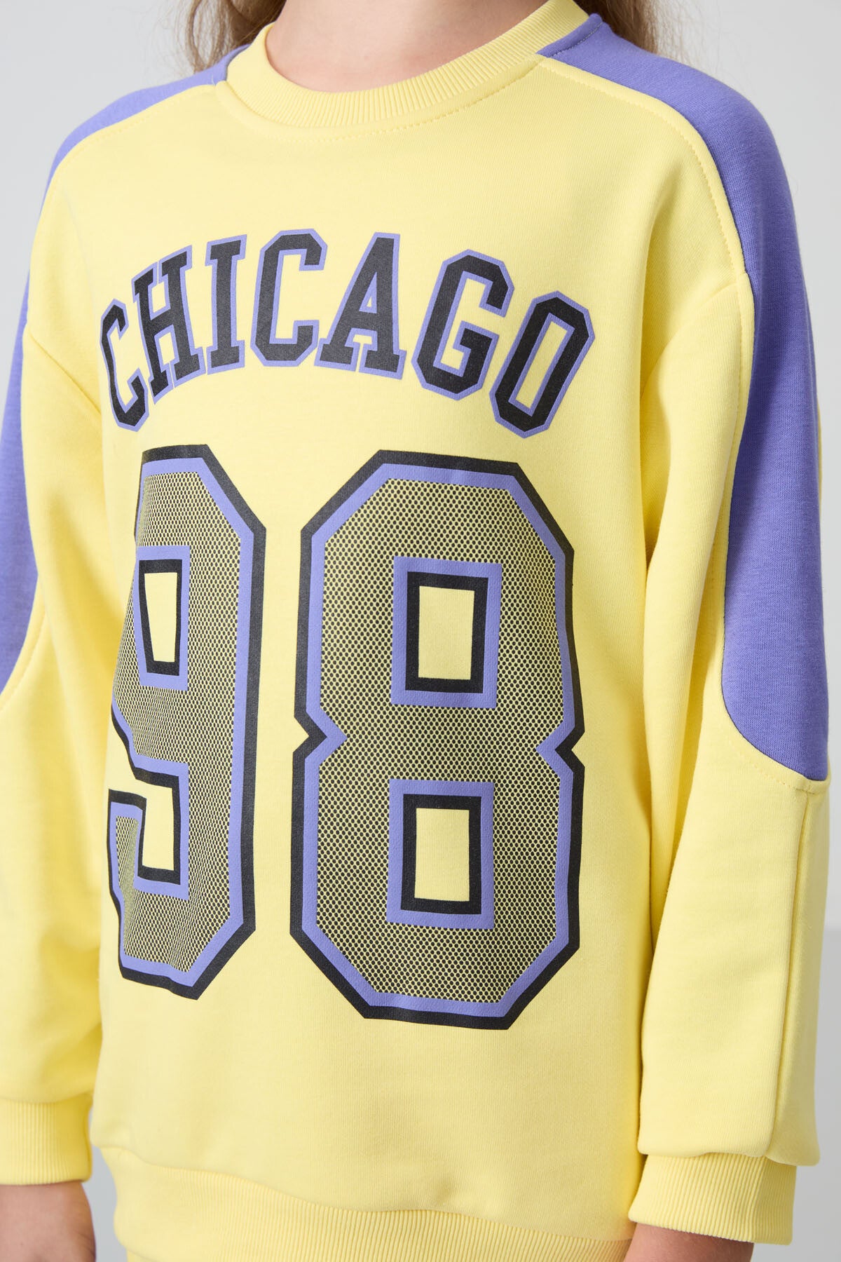 Yellow Cotton Fleece-Lined Soft Textured Standard Fit Printed Girls' Tracksuit Set - 75170