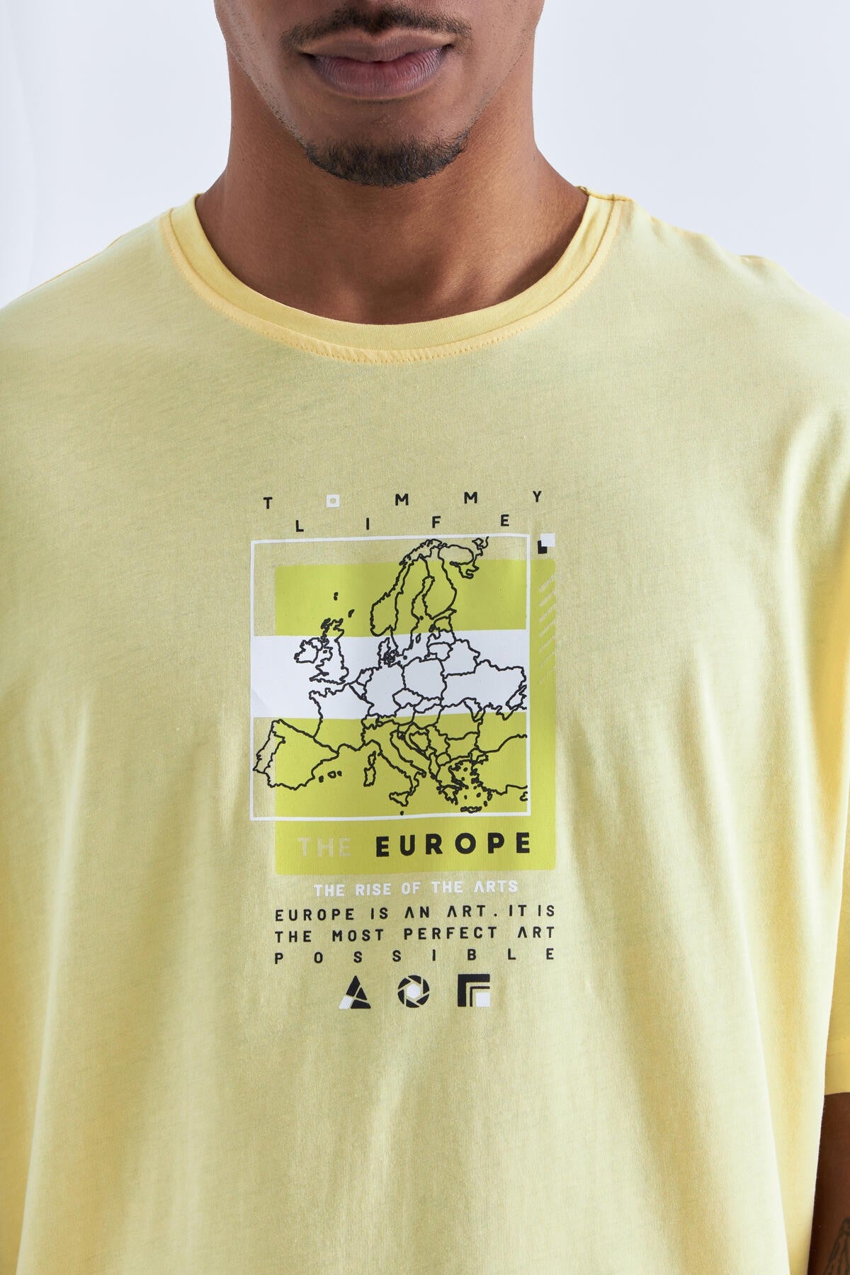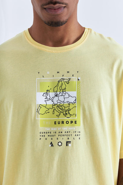 Yellow Print Detailed O Collar Men's Oversize T-Shirt - 88094