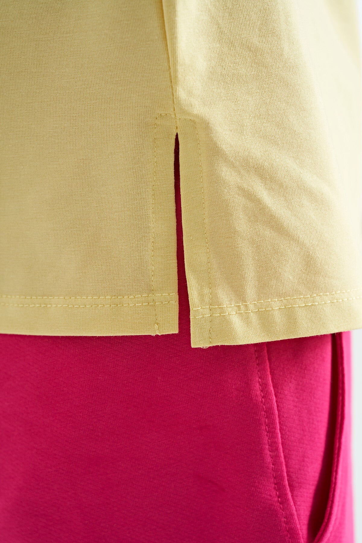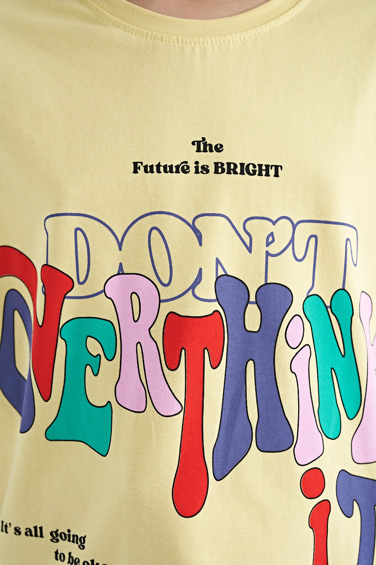 Yellow Printed Letter O Collar Oversize Short Sleeve Girl's T-Shirt - 75112