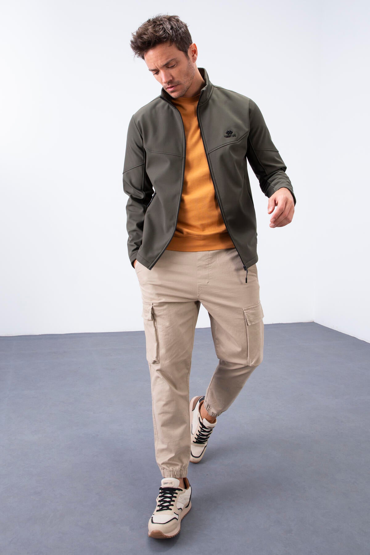 Zipper Front Stand Collar Water and Windproof Softshell Men's Jacket - 88050